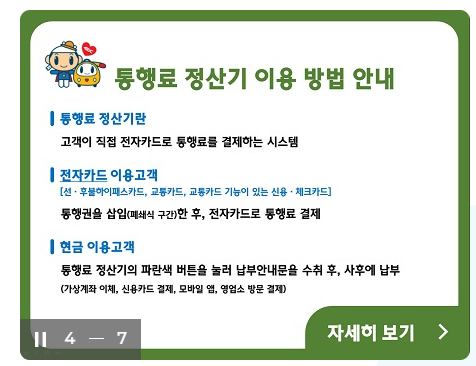 : 영업소나 금융기간, 편의점 등을 방문하여 미납된 고속도로 통행료를 조회하고 납부가 가능합니다.