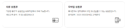상품권의 종류는 지류상품권, 모바일 상품권으로 구입이 가능합니다.