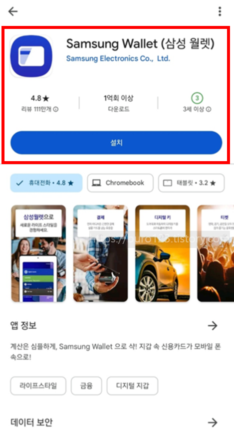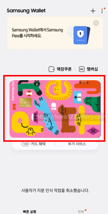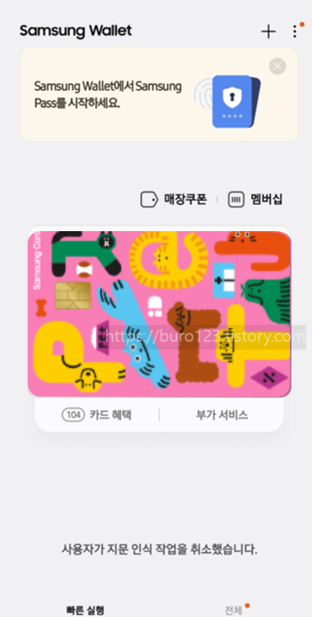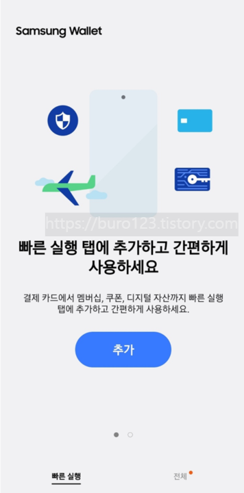 1. Samsung Wallet 앱을 실행합니다.(구 버전 사용자는 Samsung Pay 앱을 사용)