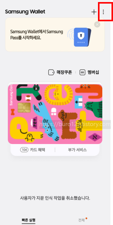 3. 선택한 카드의 화면 우측 상단에 있는 세 점(더보기) 메뉴를 누릅니다.