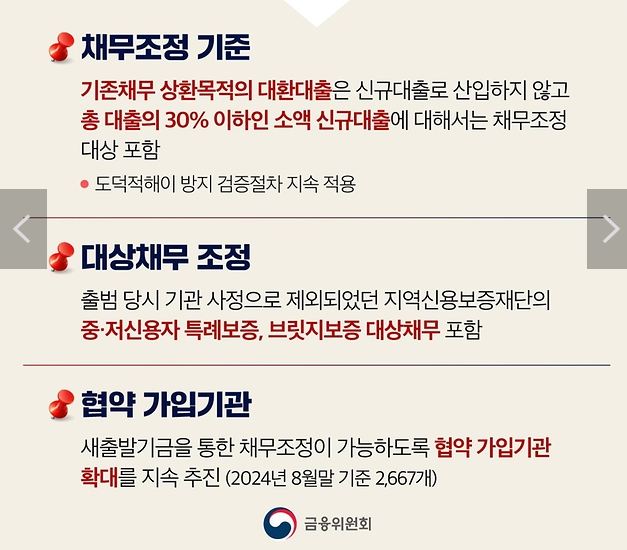 - 총 대출의 30% 이하인 소액 신규 대출도 채무 조정 대상에 포함됩니다.