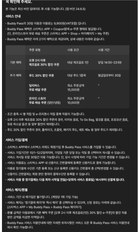 이번 기회를 통해 더 큰 혜택을 누리세요! 버디패스는 스타벅스 앱에서만 사용이 가능하므로, 최신 버전의 앱을 반드시 설치하셔야 합니다.