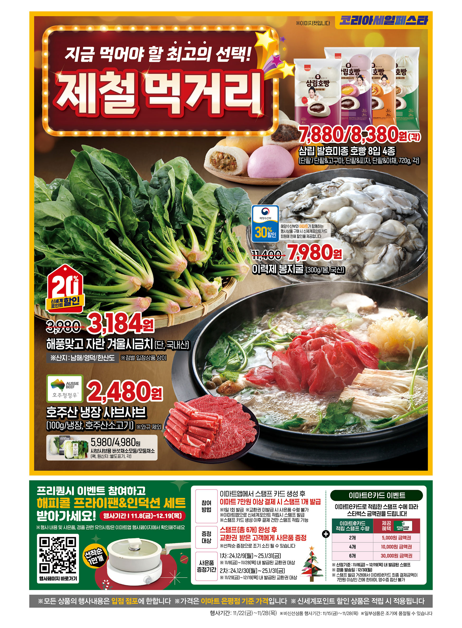 이번 11월 22일부터 28일까지 진행되는 이마트 전단행사는 겨울철 먹거리부터 신선한 축산물, 건강한 자연주의 제품까지 다양한 품목을 저렴하게 구매할 수 있는 절호의 기회입니다. 특히 코리아세일페스타와 연계된 혜택 덕분에 가성비를 놓치지 않고 장을 볼 수 있습니다.