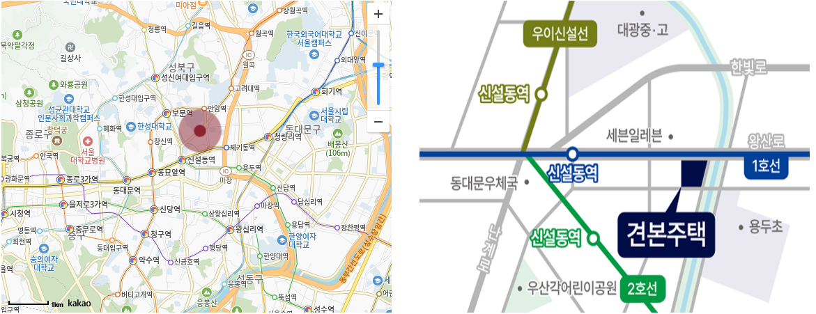대중교통 이용 시, 신설동역에서 접근이 용이할 것 같습니다.