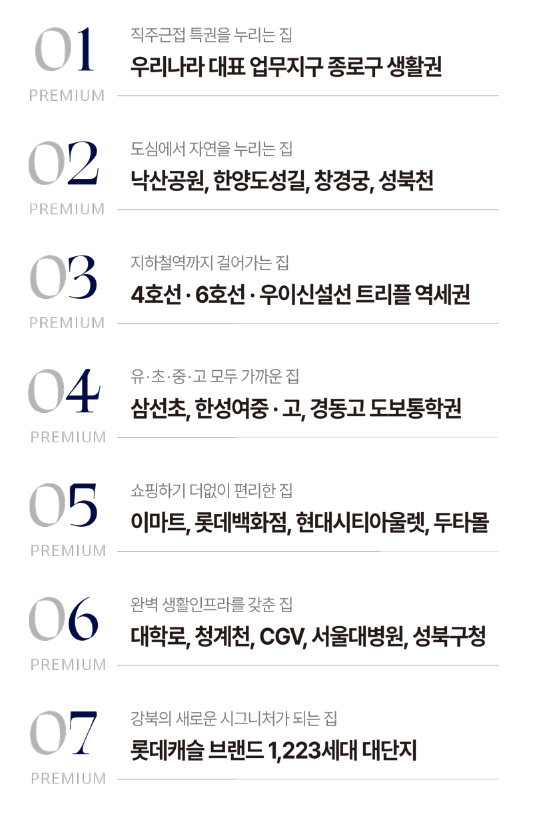 주변 시세: 성북구 삼선동의 새 아파트는 평당 약 4,000만 원에서 4,500만 원 정도입니다. 최신 재개발 아파트는 분양가 프리미엄이 포함되는 경향이 있어, 창경궁 롯데캐슬 시그니처 역시 이 범주 내에서 책정될 가능성이 큽니다.