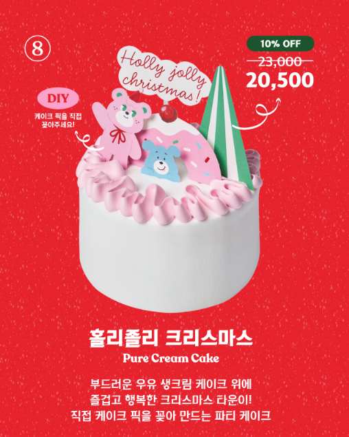 게다가, 미리 예약하면 원하는 디자인과 맛의 케이크를 놓치지 않고 받을 수 있어, 크리스마스를 더욱 완벽하게 만들어줍니다. 이 기회를 놓치지 말고, 즐거운 연말을 위한 완벽한 준비를 시작하세요!