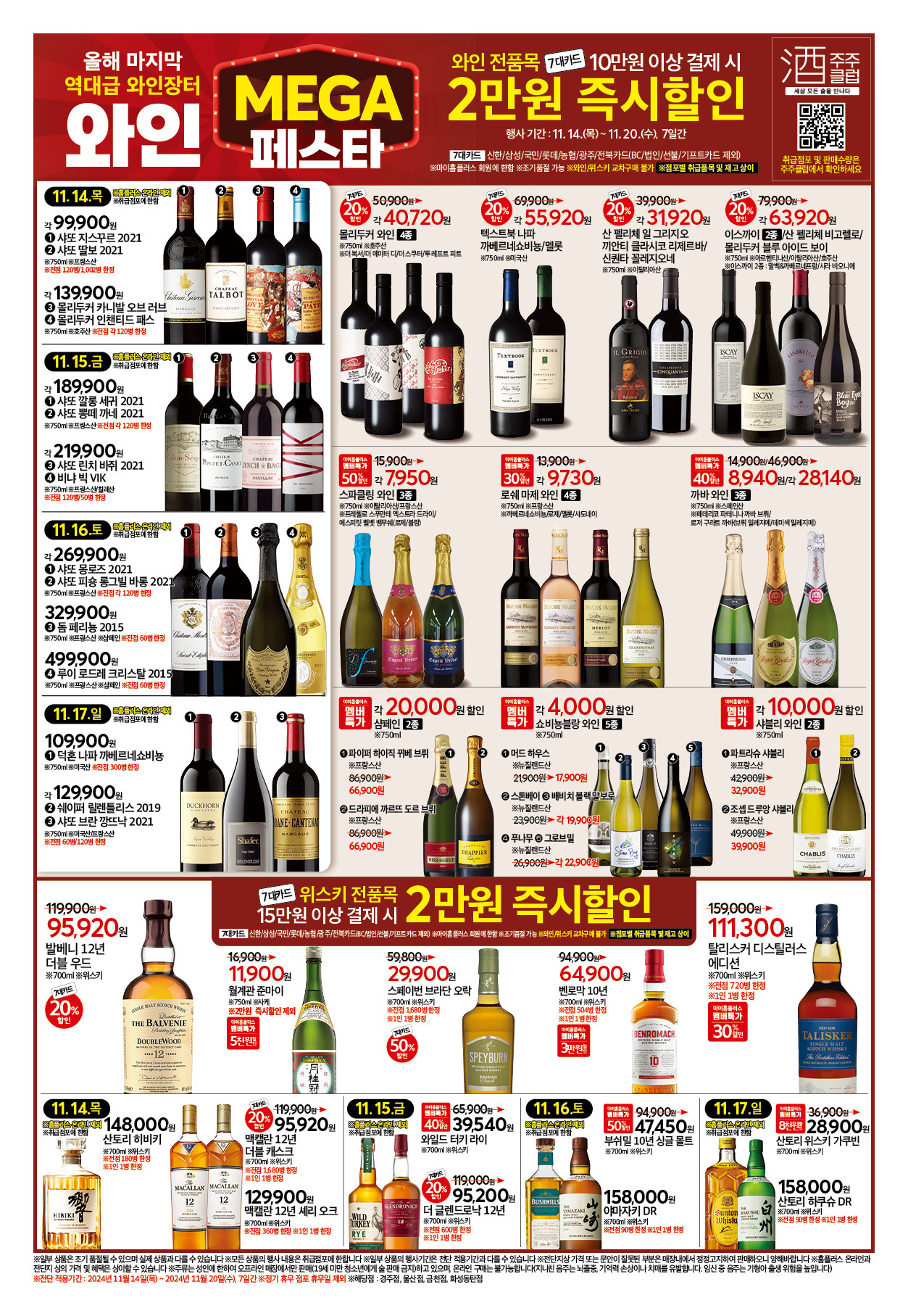 와인 전품목: 7대 카드로 10만 원 이상 결제 시 2만 원 즉시 할인