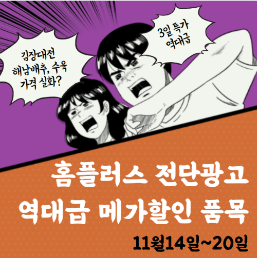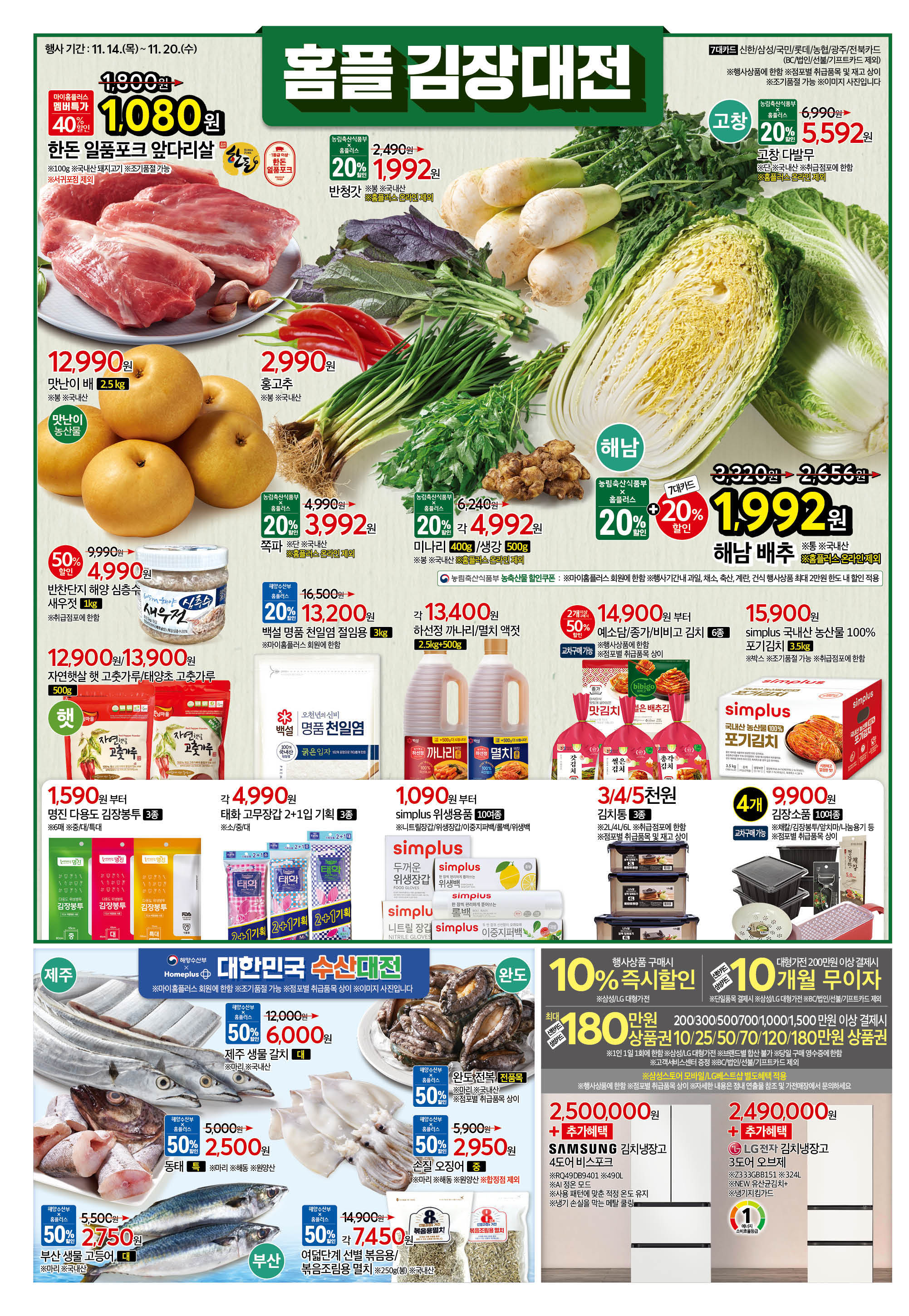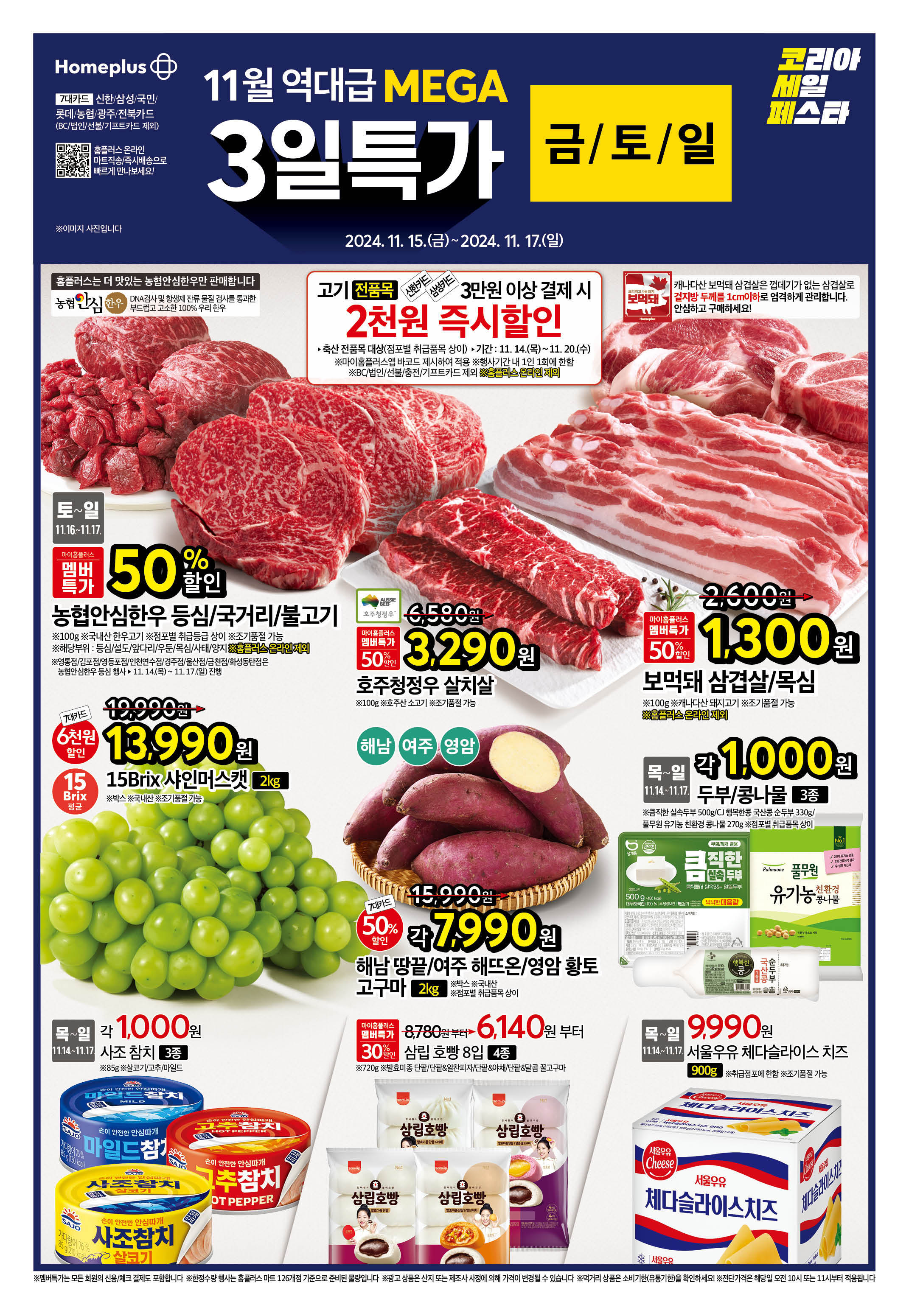 홈플러스 전단지 행사 기간은 11월 14일 목요일부터 11월 20일 수요일까지 일주일간 진행되는 이번 전단 품목들 빠르게 만나보세요.