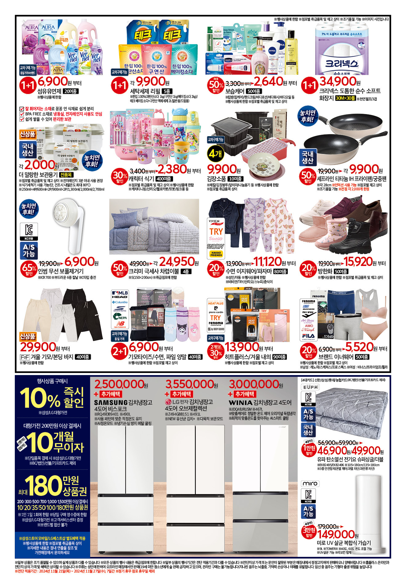 - 섬유유연제 20여종: 1+1 행사 6,900원부터