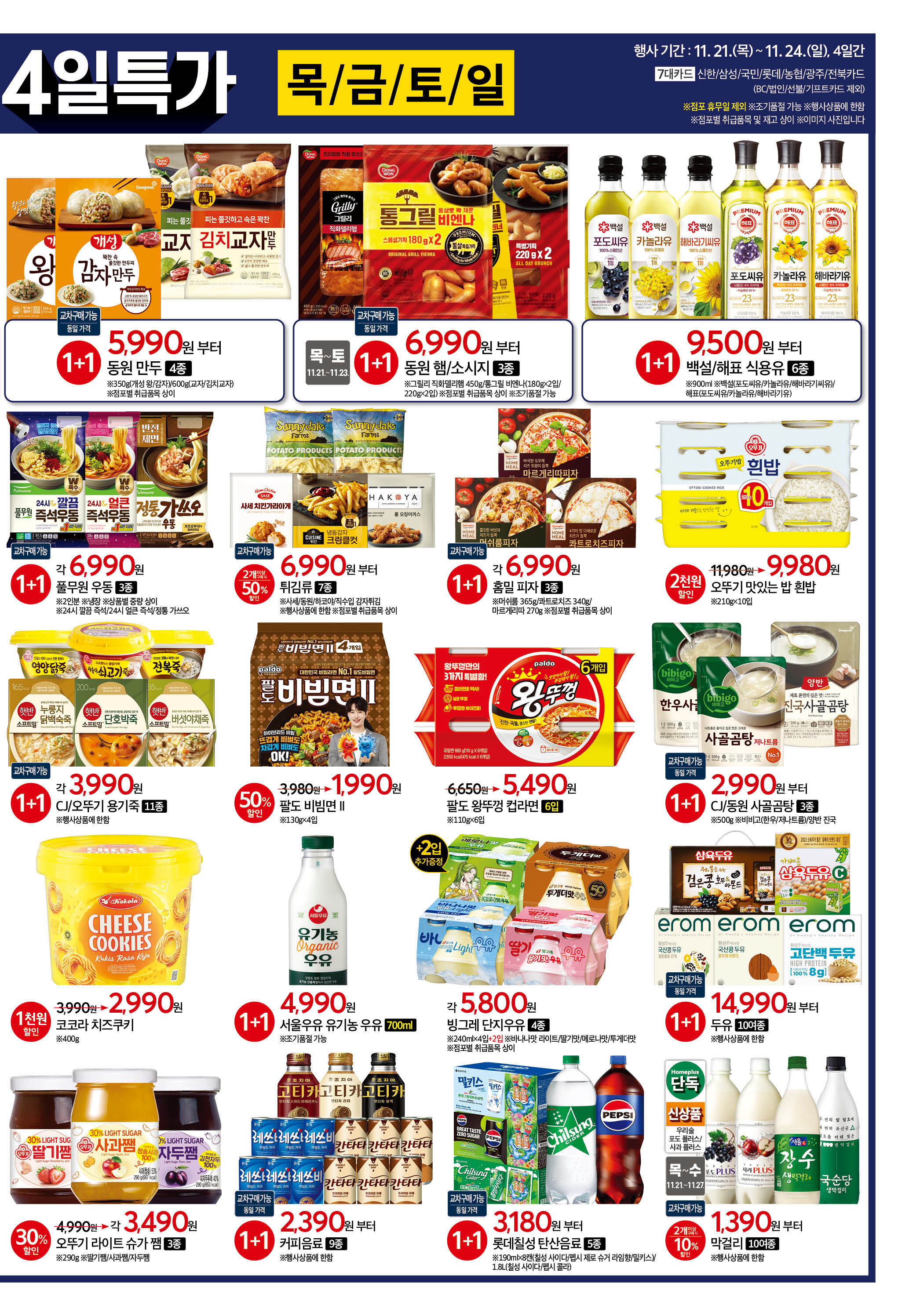그중 주요 식품 할인 정보를 간추려드리니 쇼핑 전에 꼭 참고하세요!