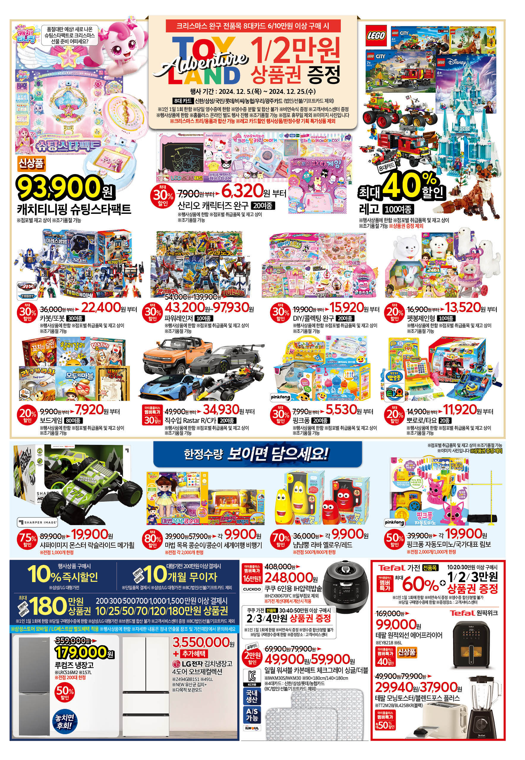 이번 홈플러스 전단행사는 연말을 맞아 다양한 상품을 저렴하게 구매할 수 있는 좋은 기회입니다. 특히 생활용품, 식품, 완구 등 폭넓은 할인 혜택을 놓치지 마세요! 필요한 품목을 미리 확인하시고 합리적인 쇼핑 하시길 바랍니다. 😊