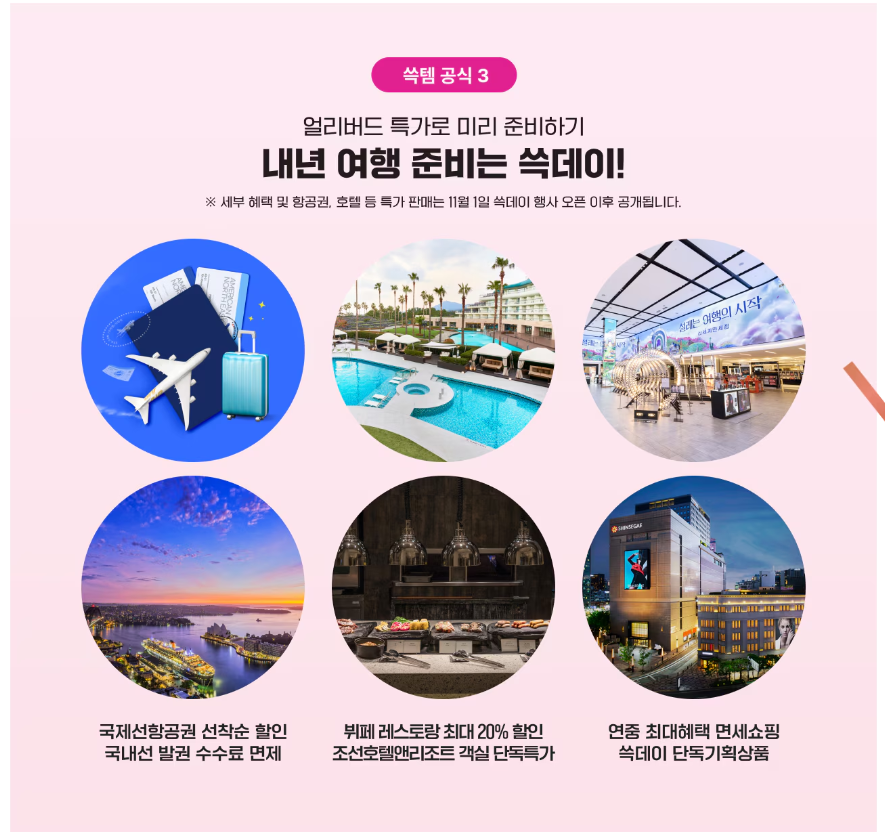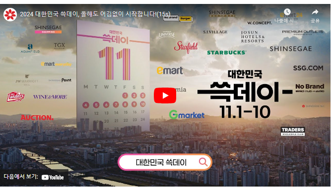 신세계백화점에서는 11월 8일부터 10일까지 특가 세일이 진행됩니다. 이 외에도, 11월 1일부터 10일까지 G마켓, SSG닷컴 및 스타벅스와 조선호텔 등 오프라인 매장에서 역대급 할인 행사가 열릴 예정입니다.